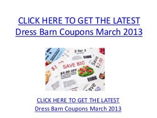 DressBarn Coupons for Existing Users- June 2022 - Super Easy This post will guide you through how to get the best DressBarn discounts quickly and easily! DressBarn Coupons & Deals Option 1 - Check Active DressBarn Coupons Option 2 - Sign up for Email and Text alert Option 3 - Check for the DressBarn official deal page Option 4 - Join the DressBarn Rewards program Option 1 - Check Active DressBarn Coupons