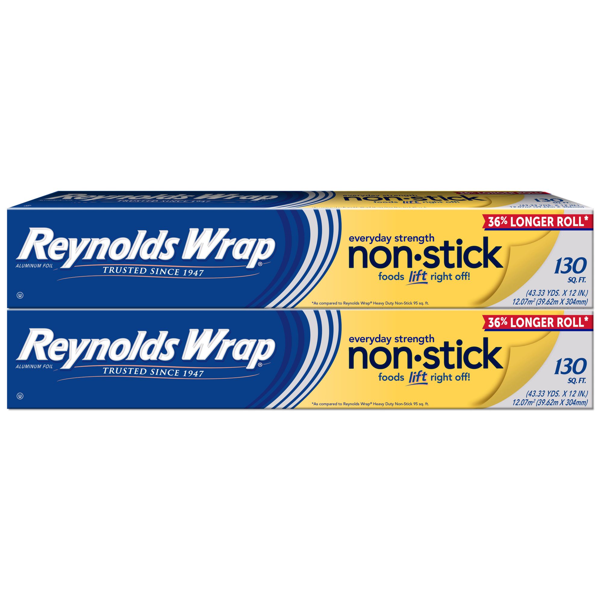Reynolds Wrap Non Stick Foil, 2 ct. - BJs WholeSale Club Reynolds Wrap 130 Sq. Ft. Everyday Strength Aluminum Foil is the aluminum foil you trust with a special food-safe non-stick coating. Reynolds Wrap Non-Stick Foil is perfect for lining pans and freezer storage. Non-Stick Foil is also the ideal option for oven use, since it preserves the flavor of yo