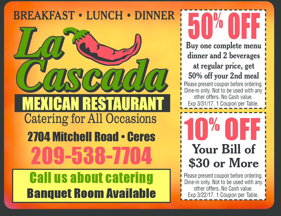 SOL Mexican Cocina Coupon & Promo Code | Verified … These SOL Mexican Cocina coupons have expired but may still work 30 % OFF Best Sellers at SOL Mexican Cocina - Grab Up To 30% Off Used 3 Times Get Code See Details 5 % OFF … Coupons | El Dorado Mexican Restaurant To redeem coupons please print this page and bring it with you to the restaurant. Eldorado Mexican Restaurant $1 Off Lunch 11am - 3pm All Locations! Not Valid For Alcohol Purchases. Eldorado Mexican Restaurant $5 Off of $20 or more All Locations! Not Valid For Alcohol Purchases. Eldorado Mexican Restaurant $10 Off of $40 or more $15 OFF Mexican Inn Cafes Coupons & Promo Deals - FriendsEAT Mexican Inn Cafe in Fort Worth has offered coupons and deals such as: Lunch Specials starting at $9.49, served until 4pm only. Kids Menu, only $5.99, available for kids 12 and below. Create Your Own Combo - Choose 2 for $10.59 or Choose 3 for $11.29. Served with Mexican rice and refried beans. CBS New York - Breaking News, Sports, Weather, Traffic and ... Mexican restaurant chain donates 6,000 meals a week One restaurant chain takes the season of giving to a whole new level, working year-round to feed their community. 6H ago